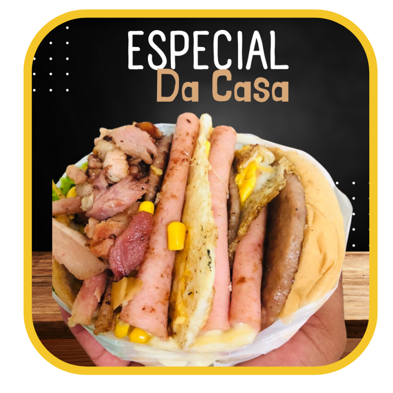 PÃO, 2 BIFES, PRESUNTO, MUÇARELA, BACON, BATATA, MILHO, TOMATE E ALFACE.
