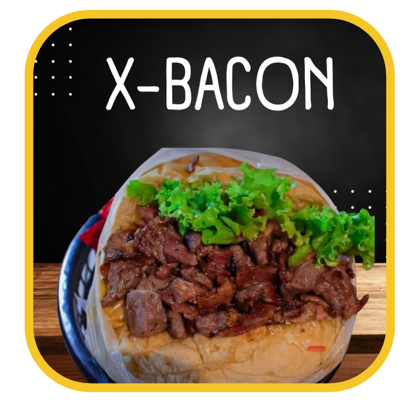 PÃO BRIOCHE TOSTADO NA MANTEIGA, 3 BIFES SUCULENTOS DE COSTELA BIVINA DE 100gr, 3 FATIAS DE CHEDDAR, TIRAS DE BACON E MOLHO ESPECIAL.